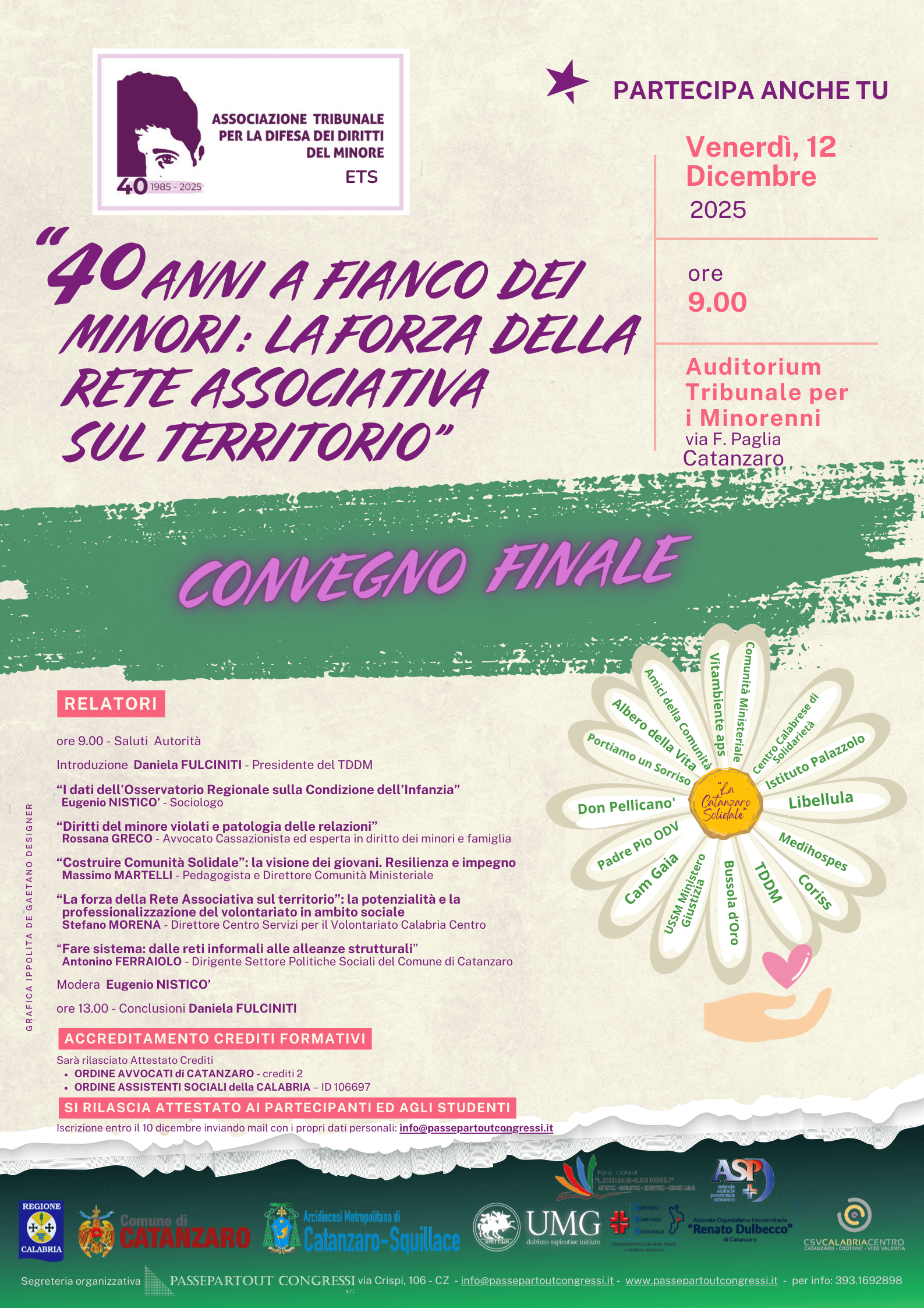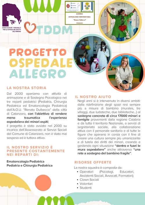 L’Associazione “Tribunale per la Difesa dei Diritti del Minore” di Catanzaro, opera attivamente nella città dal 1985. Da quasi quarant’anni, le nostre azioni sono finalizzate alla tutela e alla difesa dei diritti del minore, richiamando i principi generali contenuti nella “Carta dei Diritti del Fanciullo”, nella “Convenzione ONU sui Diritti del Fanciullo” del 1989.